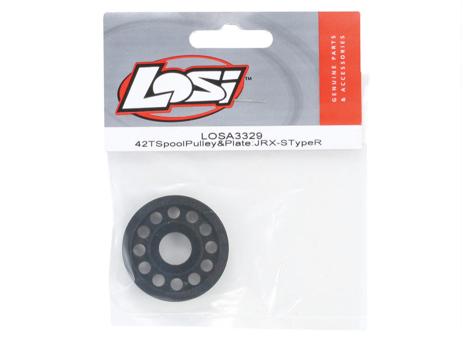This is a replacement 42T Spool Pulley & Plate for the Losi JRX-S Type-R on-road competition touring car.