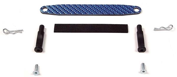 Complete battery mounting system for 4-cell inline battery pack. Includes graphite battery holding plate, molded holder posts, and fasteners.