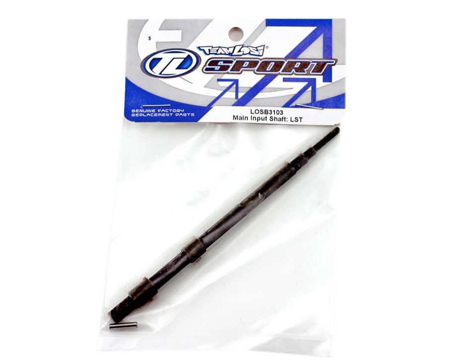 This is a replacement Losi main input shaft. This is the main input shaft in the transmission of the LST. Each pack contains one shaft and gear pin.
