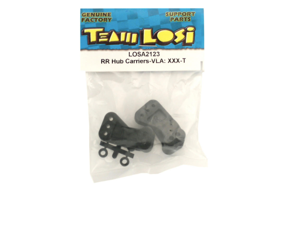 This is a set of two replacement rear hub carriers from Losi. The rear hub carriers attach to the lower control arms, and hold the bearings for the rear axles.