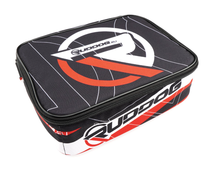 The RUDDOG Accessories Bag (medium) keeps your RC essentials tidy and protected on the way to the track. With its compact outer size of approximately 25 × 19 × 8 cm, it fits easily into your pit bag or backpack while offering a surprisingly roomy main compartment. A zippered mesh pocket in the lid organizes small parts and cables, and the side carry handle makes transport comfortable. The striking RUDDOG design looks great on any pit table.